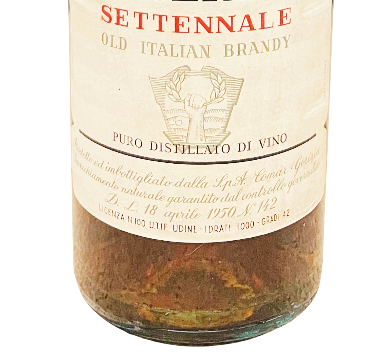 Sensationeller und besonders exklusiver Brandy Riserva Settennale Comar Aquileia Vintage 1950.