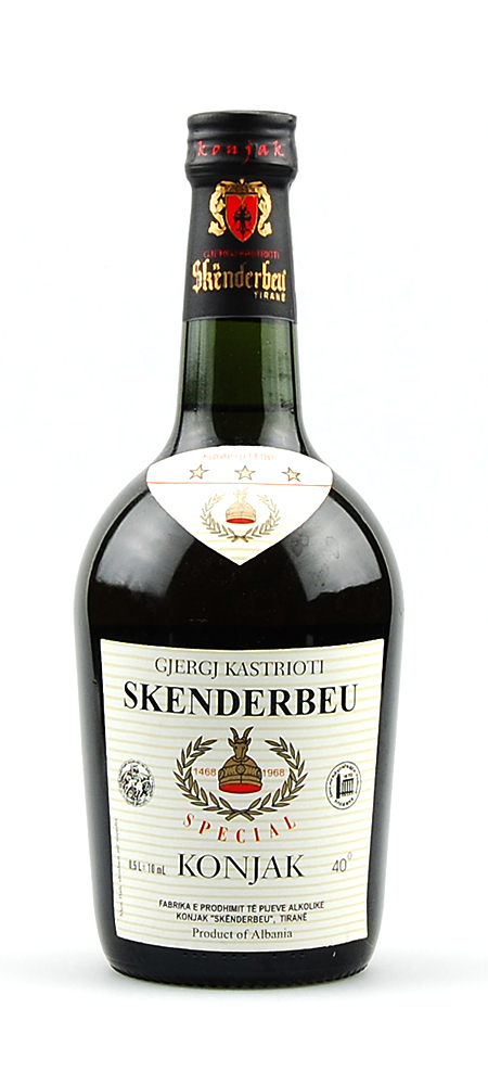 Original albanischer Skenderbeu Konjak, benannt nach dem großen albanischen Fürsten Gjergj Kastrioti, genannt Skenderbeg (alb. Skenderbeu, 1405 - 1468). Berühmt geworden durch seine großen Taten zur Verteidigung Albaniens gegen die Osmanen und verehrt als Nationalheld Albaniens. Dieser hervorragende Brandy hat bereits in vielen internationalen Wettbewerben zahlreiche Auszeichnungen erhalten und ist das Nationalgetränk Albaniens. Aufgrund seines typischen Aromas, dem einzigartigen Geschmack und dem natürlichen Alterungsprozess und vor allem den äußerst schwierigen Umständen diesen Brandy aus Albanien nach Deutschland zu bekommen, hat sich diese einzigartige Spirituose zu einen tollen Verkaufsschlager in unseren Haus entwickelt. EXKLUSIV bei JAGARO, dem Spezialshop für erlesene Jahrgangsgeschenke und Jahrgangs-Raritäten..