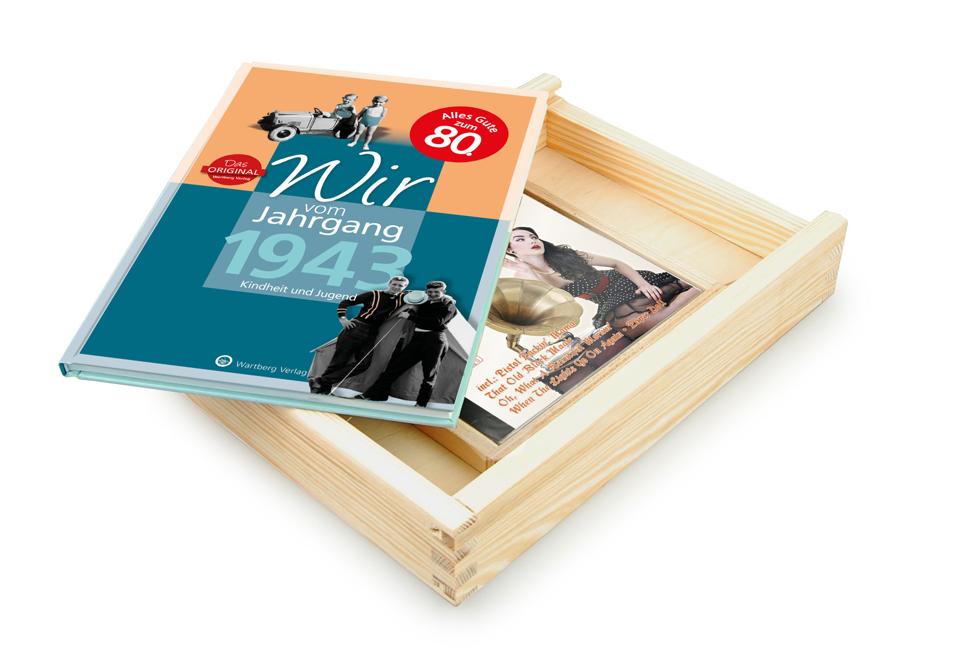 Brandneu! Nutzen Sie die großartige Chance, die Buchchronik Wir vom Jahrgang 1943 zusammen mit den musikalischen Highlights HITS des Jahres 1943 zu personalisieren. Mit einer edlen Gravur auf der Holzkiste fügen Sie dem Geschenk für Ihre Liebsten eine zusätzliche Einzigartigkeit hinzu. Schicken Sie diese auf eine Reise in alte Zeiten und erwecken Sie alte Erinnerungen an frühere Zeiten. Verschenken Sie zusätzlich gute Laune mit fabelhaften Hits von früher. Ob zum Geburtstag, Mutter- bzw. Vatertag, Hochzeit oder Weihnachten, dieses Geschenk macht zu jedem Anlass eine gute Figur. Nutzen Sie unseren brandneuen Service und lassen Sie sich von uns Ihre Grüße, Glückwünsche und Botschaften auf die Holzkiste gravieren. Dank unserer neuen, hochwertigen Graviermaschine verschenken Sie so ein ganz persönliches Geschenk.