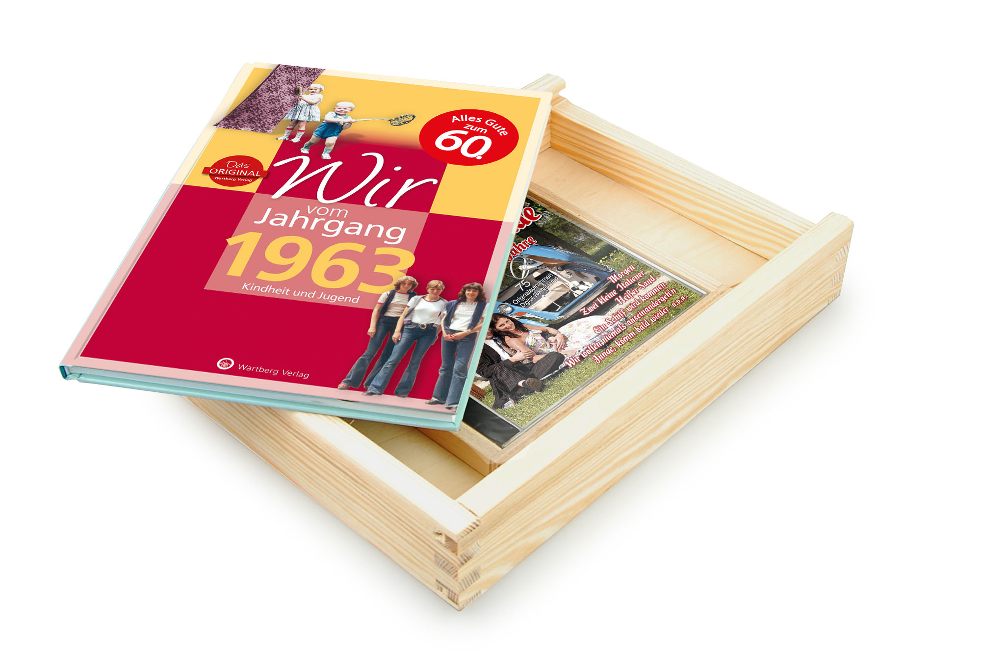 Brandneu! Nutzen Sie die großartige Chance, die Buchchronik Wir vom Jahrgang 1963 zusammen mit den Schlager der 60er Jahre zu personalisieren. Mit einer edlen Gravur auf der Holzkiste fügen Sie dem Geschenk für Ihre Liebsten eine zusätzliche Einzigartigkeit hinzu. Schicken Sie diese auf eine Reise in alte Zeiten und erwecken Sie alte Erinnerungen an frühere Zeiten. Verschenken Sie zusätzlich gute Laune mit fabelhaften Hits von früher. Ob zum Geburtstag, Mutter- bzw. Vatertag, Hochzeit oder Weihnachten, dieses Geschenk macht zu jedem Anlass eine gute Figur. Nutzen Sie unseren brandneuen Service und lassen Sie sich von uns Ihre Grüße, Glückwünsche und Botschaften auf die Holzkiste gravieren. Dank unserer neuen, hochwertigen Graviermaschine verschenken Sie so ein ganz persönliches Geschenk.